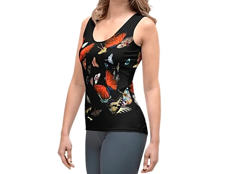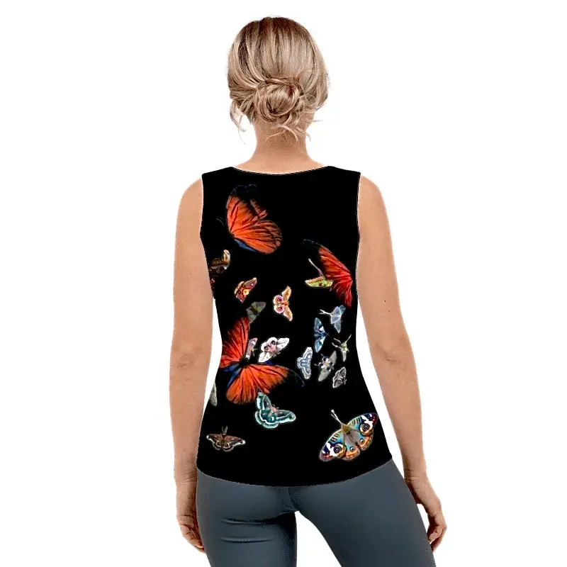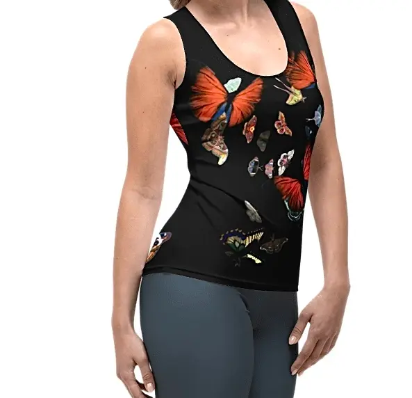 Esta camiseta sin mangas ajustable y estampada por sublimación es una prenda imprescindible para tu armario. La ilustración original, creada por Inma de la Riva-INRIDELO, se aplica en exclusiva para este top. Cada pieza se corta y cose internamente después de la impresión para asegurar un diseño integral y genuino.