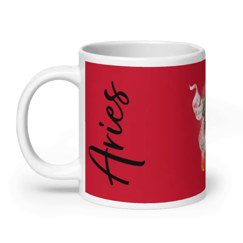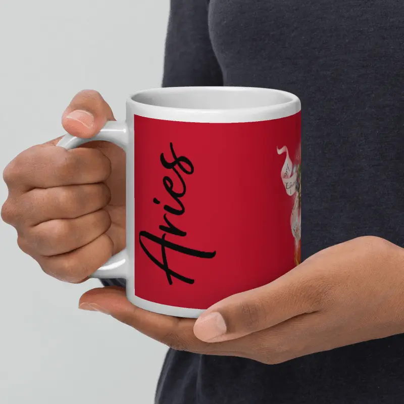 En resumen, la taza de Aries, a través de su impactante color rojo, los elementos que evocan fuego y la sutil representación del carnero, encapsula la pasión, la energía, el coraje, la determinación y la naturaleza pionera de este signo zodiacal.