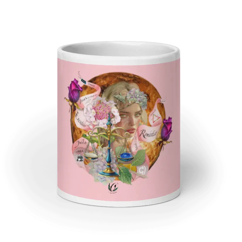 Esta taza, diseñada por Inma de la Riva & Inridelo, captura la esencia de Libra a través de un diseño que enfatiza la belleza, la armonía, el equilibrio y la elegancia, cualidades intrínsecas a la personalidad de este signo zodiacal. El símbolo de Libra, la Balanza (o las escalas), representa precisamente esa búsqueda de equilibrio, justicia, armonía y equidad.